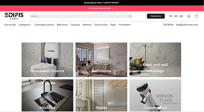 Многоязычный интернет-магазин Edifis продает ванные комнаты, сантехнику и кухни. Вы также можете сделать свой Instant Site многоязычным!