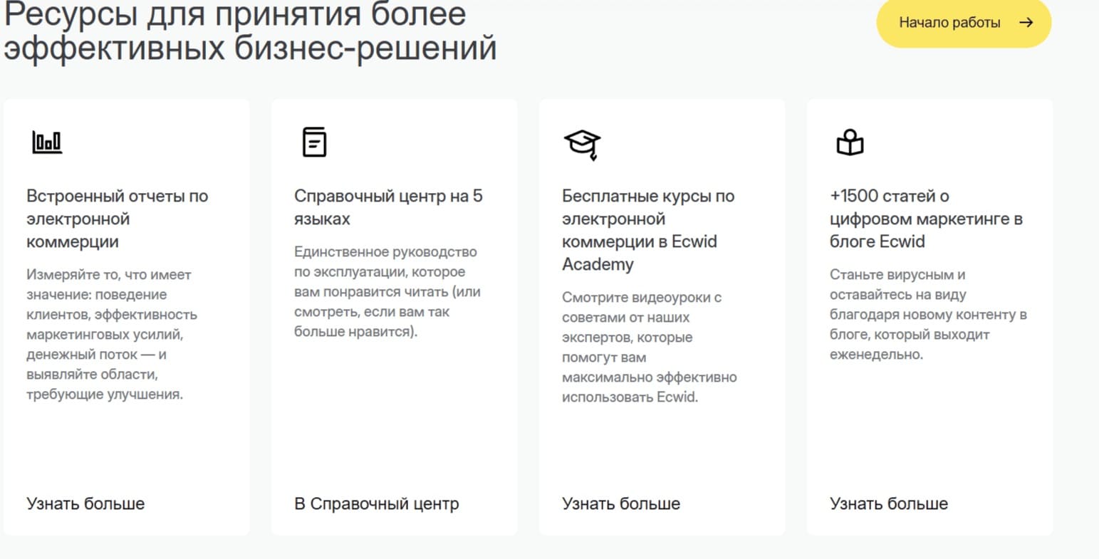 Главный плюс сервиса — открытость. Пока многие конструкторы формируют закрытую экосистему, запрещая перенос сайтов на другие площадки и усложняя экспорт товаров, Ecwid предлагает максимально простую интеграцию с самыми разными платформами. Среди других плюсов выделим: